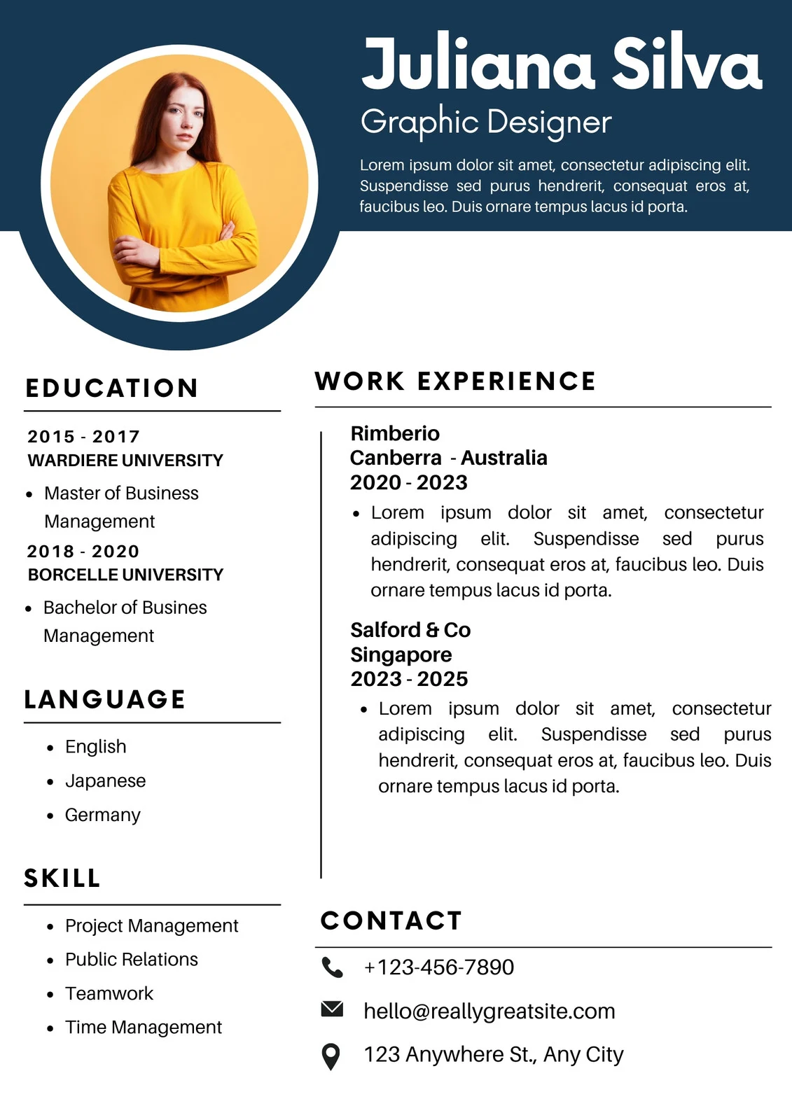 قالب سيرة ذاتية احترافي بتصميم بسيط وأنيق، قابل للتعديل في Word أو Canva، مثالي للتقديم على الوظائف الرسمية.